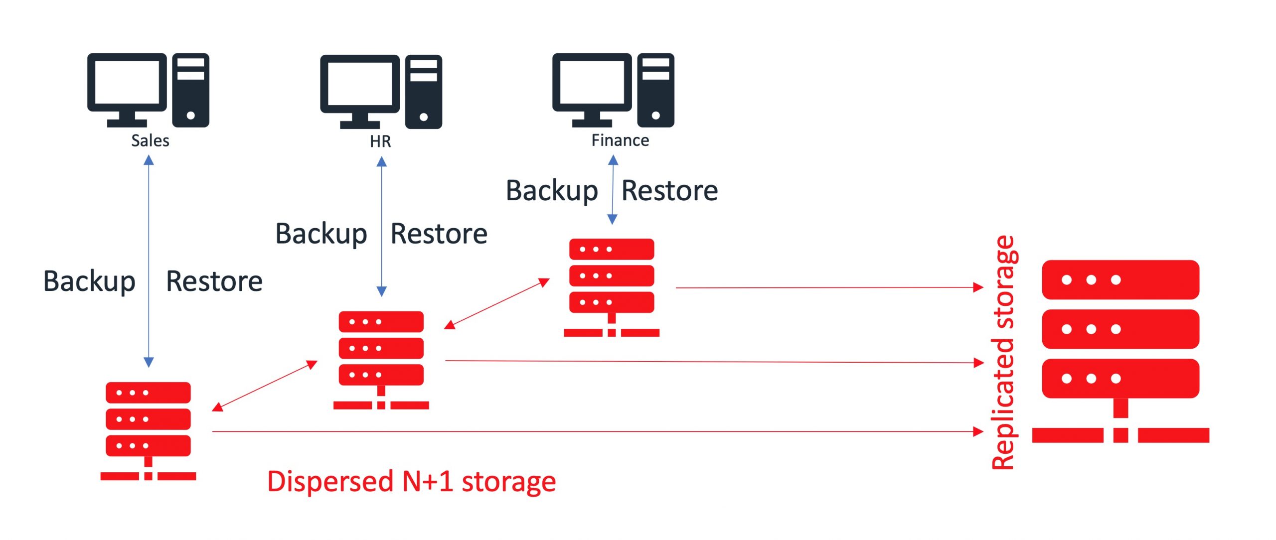 Distributed storage diffuses data across multiple physical appliances. You can use distributed storage where the requirement is to scale storage and the redundancy is addressed by architecture of application layers.